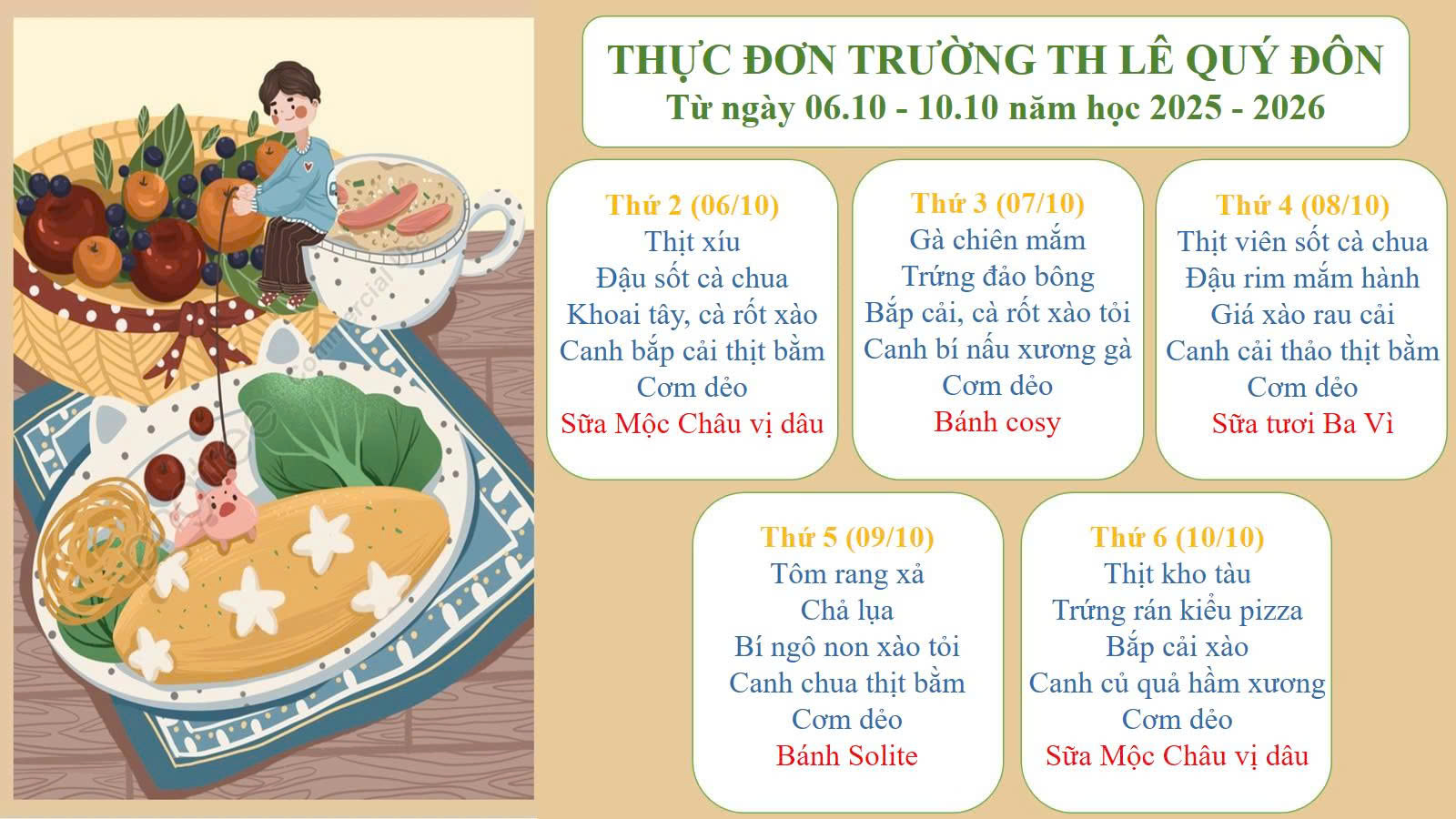 THỰC ĐƠN TUẦN 1 THÁNG 10 NĂM 2025
